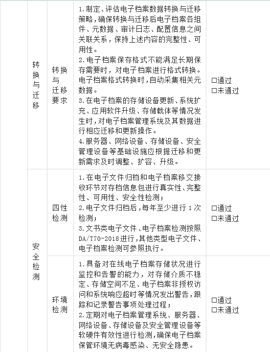 9.3.1 应制定、评估电子档案数据转换与迁移策略,确保转换与迁移后电子档案各组件、元数据、审计日志、配置信息之间关联关系,保持上述内容的完整性、可用性。