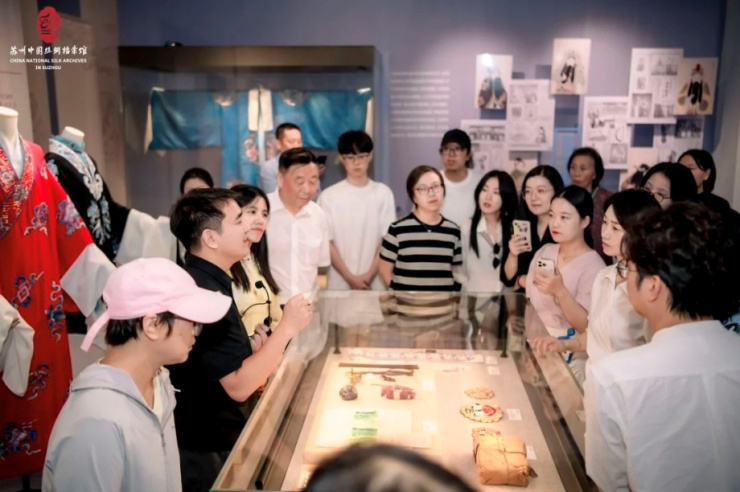 活动中,剧装戏具制作技艺国家级非物质文化遗产代表性传承人李荣森、共创艺术家张弱、苏绣青年艺术家张雪、中数文化大数据(苏州)有限公司总经理庄会军、中国丝绸档案馆副馆长董文弢围绕“非遗+艺术+档案”跨界主题,多维探讨非遗保护、艺术创新与档案活化之间的互动路径,以推动文化记忆在当代语境下的转译与传播,增强公众对档案文献遗产的认知与共鸣。
