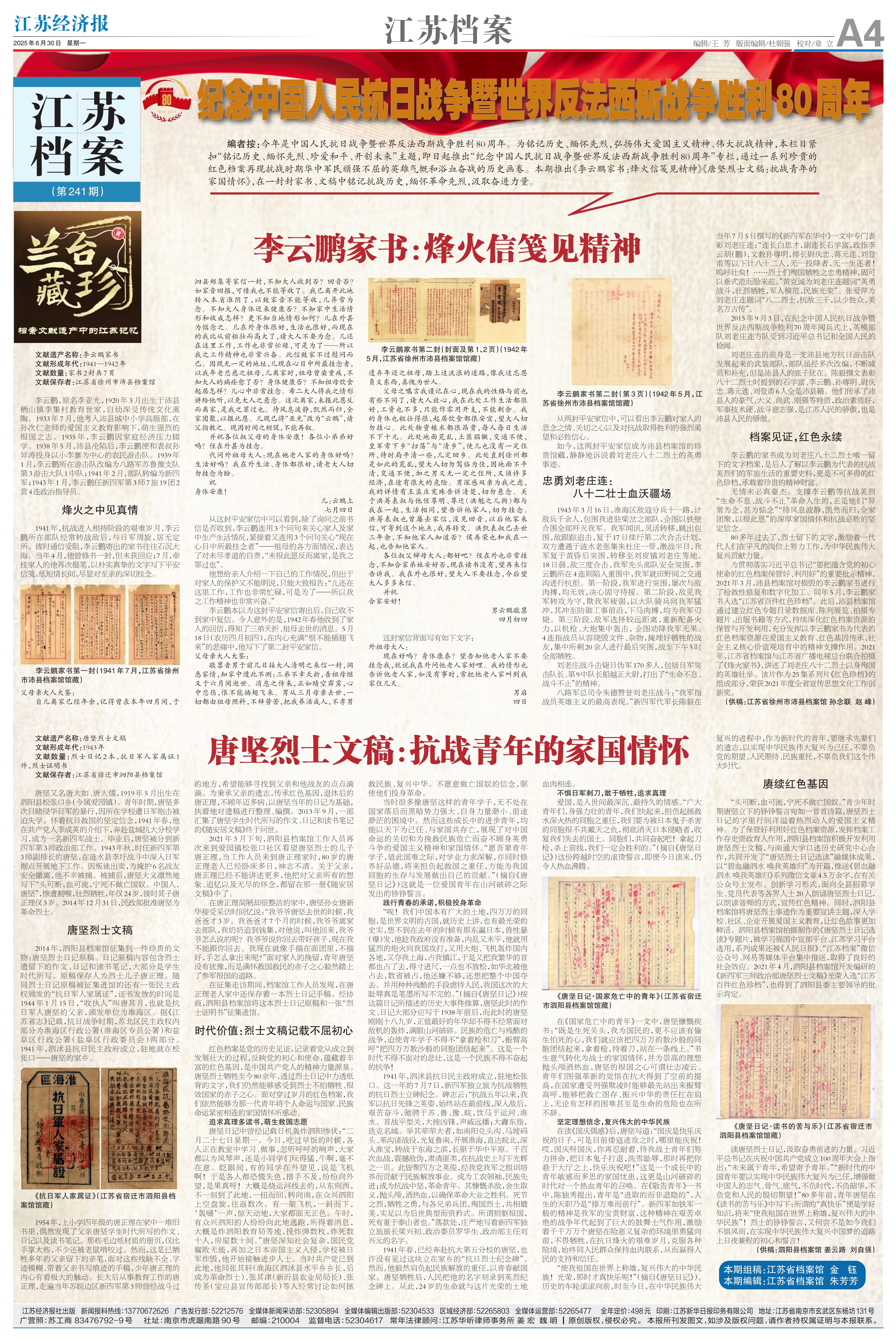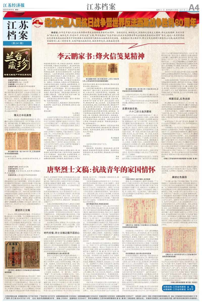 纪念中国人民抗日战争暨世界反法西斯战争胜利80周年|《江苏档案》特刊第241期