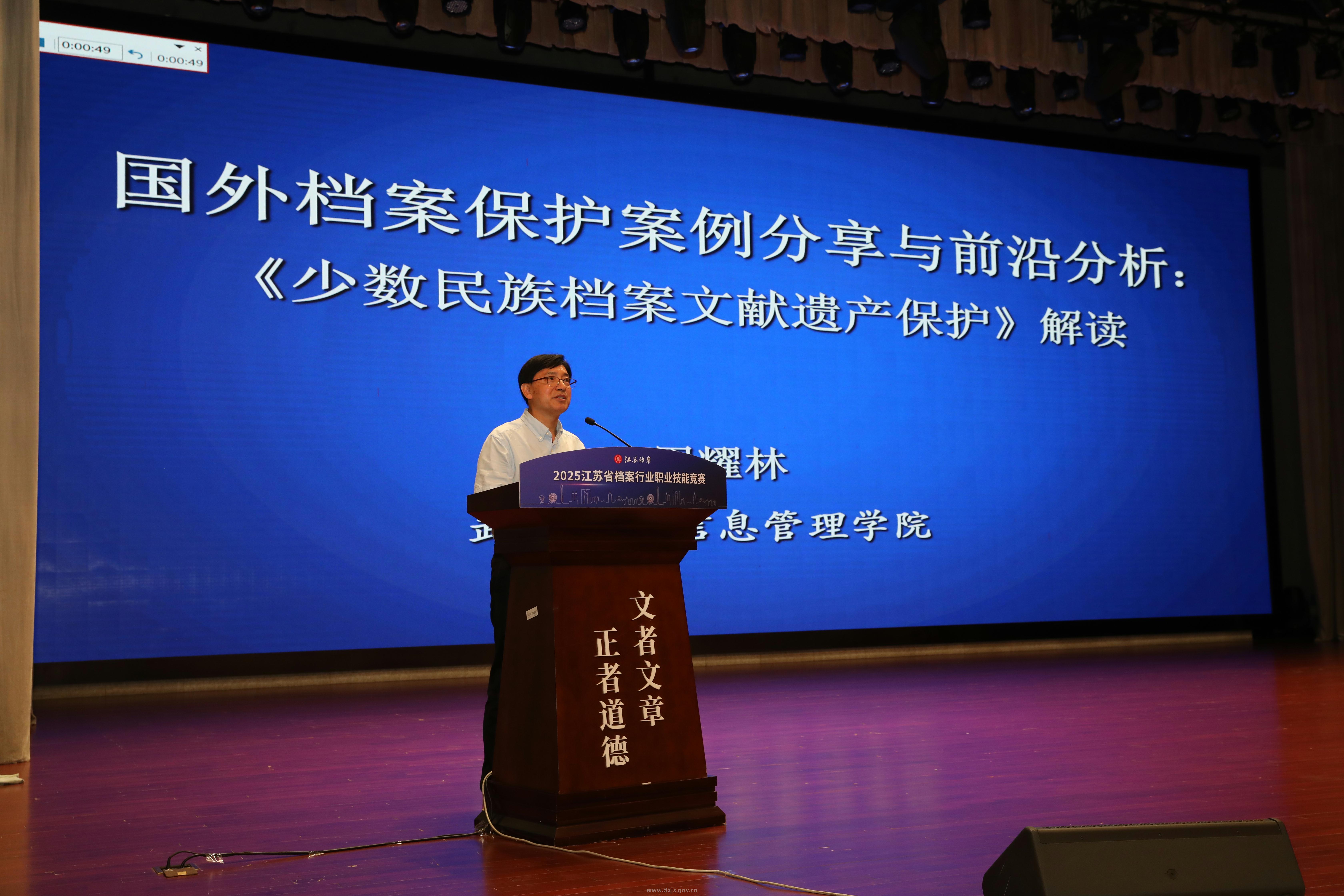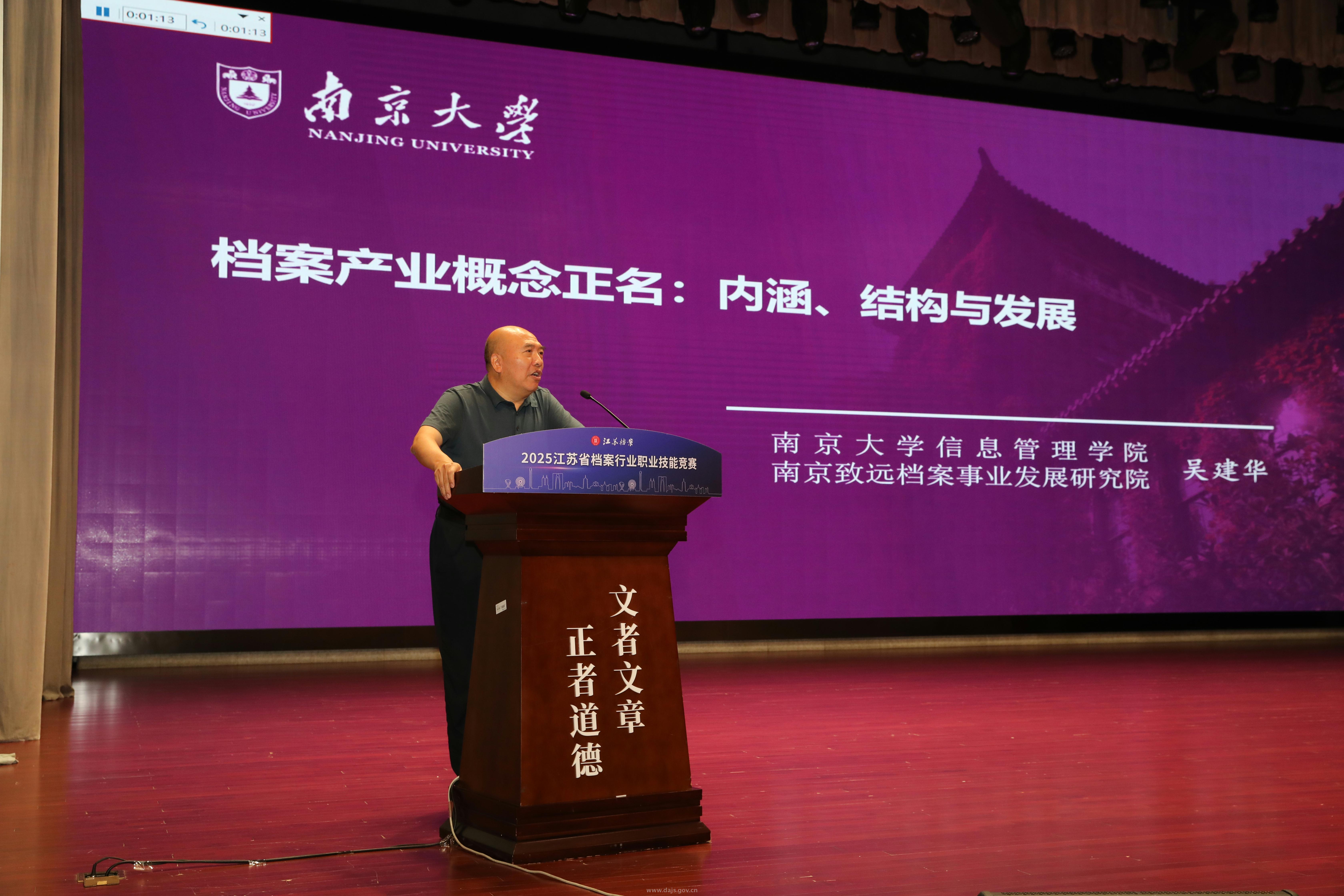 本次竞赛是省档案部门联合省委省级机关工委、省人社厅、省总工会、团省委和省档案学会等部门共同举办,苏州城市学院具体承办的一场高标准、高规格的比赛,为我省档案工作者搭建了提升技能、锤炼匠心、展示自我的平台,集中展示我省档案工作者的“工匠精神”和职业技能水平,诠释“人才强档”的丰富内涵。9月25日上午,决赛在苏州城市学院圆满落下帷幕。省档案局局长、省档案馆馆长顾俊,省社科联党组书记、常务副主席张新科,省档案馆副馆长薛春刚,共青团江苏省委二级巡视员施静芝,苏州城市学院副校长孙德芬等领导和嘉宾出席了大赛闭幕式。南京大学信息管理学院教授、博士生导师吴建华,武汉大学二级教授、博士生导师周耀林,山东大学历史学院教授、博士生导师谭必勇围绕行业前沿趋势与实践创新成果分别发表主旨演讲。