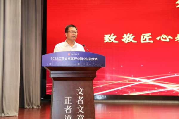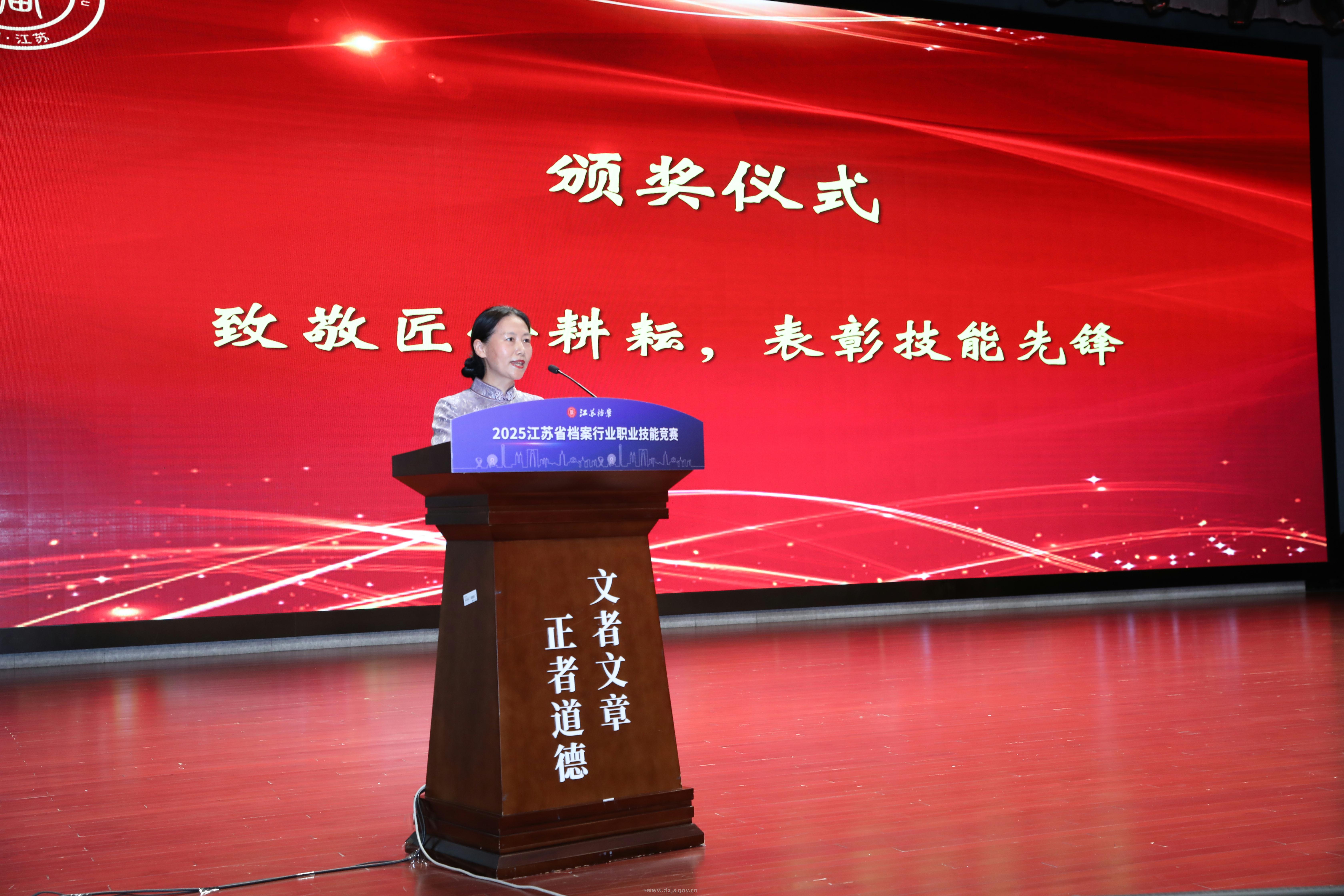 顾俊代表竞赛组委会向在竞赛中取得优异成绩的获奖选手和单位表示热烈祝贺,向全省参与本次竞赛的档案工作者和为竞赛付出辛勤劳动的各位同志表示衷心感谢。他指出,职业技能竞赛不仅是鼓励人才亮绝活、展风采的练兵场,也是培养人才学技能、钻业务的风向标。本次竞赛已经落下帷幕,但档案人才队伍建设的征程仍需要持之以恒、久久为功。希望受到表彰的选手珍惜荣誉、再接再厉,把竞赛中展现的好技能、好作风带到日常工作中,继续发挥示范引领作用。希望全体档案工作者以获奖选手为榜样,立足岗位、苦练本领,努力成为档案业务的行家里手。希望各级档案部门以此次竞赛为新起点,重点在四个方面加大档案人才培养力度。一是在系统推进上下功夫。将档案人才队伍建设纳入“十五五”档案事业发展总体规划,谋划新一轮档案人才培养专项计划,形成“培养、评价、使用、激励”全链条工作体系。二是在培养路径上探新路。树立产学研用融合发展理念,加强与高校、企业合作,共建档案人才培养基地、开设前沿课程,加快推进档案数字化管理师认定工作,培养更多顺应档案数字化、智能化发展趋势的复合型人才。实施“名师带徒”计划,发挥国家级、省级“三支人才”队伍和专家库成员的传帮带作用,确保档案事业青蓝相继、匠心永传。三是在评价机制上求突破。做好初级职称“以考代评”工作,在总结完善工作经验基础上,稳步推进档案中级职称“以考代评”,不断深化我省档案专业人员职称制度改革。加大技能水平、工作实绩、科研成果在人才评价中的权重,不断完善档案人才评价标准。四是在优化环境上出实招。加强对优秀档案技能人才的表彰激励,在项目申报、培训深造、评先评优等方面给予倾斜。加大档案行业宣传力度,讲好档案人才故事,让更多人了解档案、热爱档案、投身档案事业。