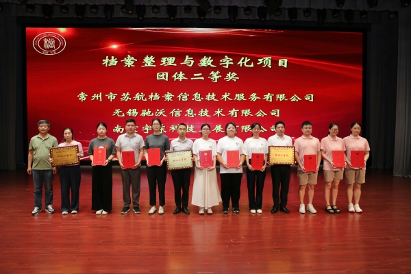 团体二等奖:常州市苏航档案信息技术服务有限公司、无锡驰沃信息技术有限公司、南京宇东科技发展有限公司
