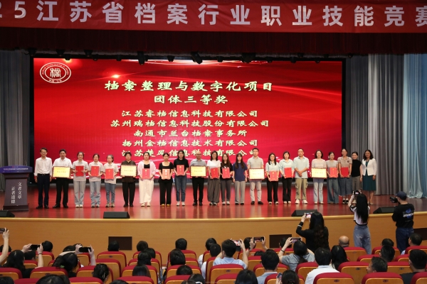 团体三等奖:江苏睿档信息科技有限公司、苏州瑞档信息科技股份有限公司、南通市兰台档案事务所、扬州金档信息技术有限公司、江苏楚风信息科技有限公司