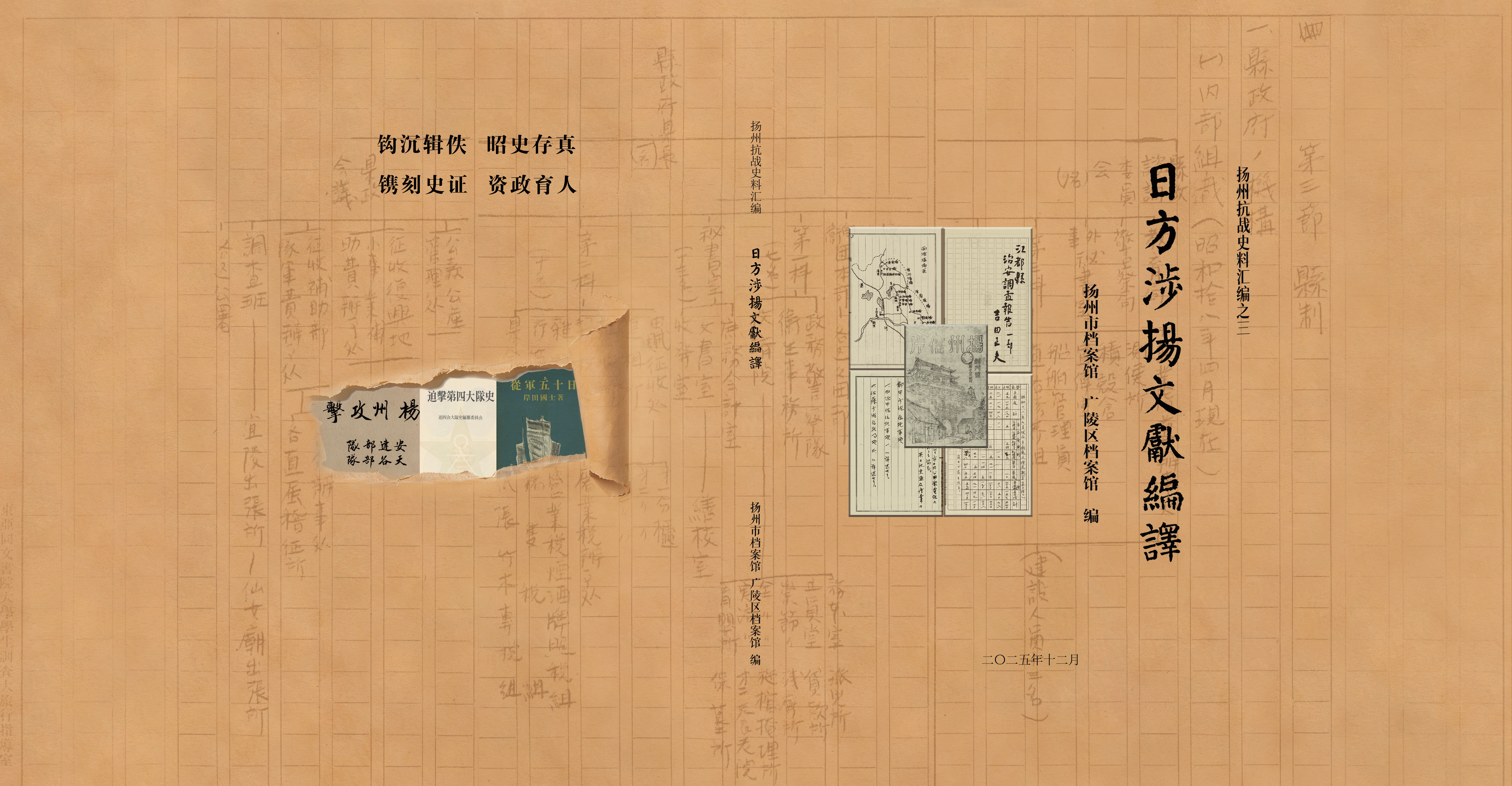 “扬州抗战史料汇编”由扬州市档案馆和广陵区档案馆联合主编,包含《扬州抗战图志》《扬州抗战报道》《日方涉扬文献编译》三本资料汇编,除汇编抗战期间日本人在扬州活动的一些图片、当时国内相关报纸刊物对扬州抗战的新闻报道以外,还包括日方有关涉扬文献资料的编译,内容真实,体量较大,严谨度高,资料互相关联、互为印证,真实记录了日本人在扬州犯下的滔天罪行和各界民众不屈不挠坚持抗战直至最终胜利的过程。