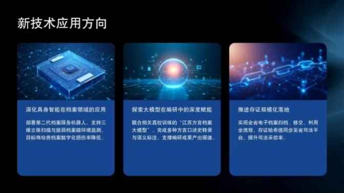 会议要求,“业务能力焕新年”的重点是在创新上下功夫,对“十五五”时期档案工作的新目标、新任务、新方向进行研究、探索和突破。充分运用省数字档案馆建设成果和档案数字化成果,开展“人工智能+档案”新课题研究,进一步明确业务焕新路径。学会摸着石头过河,不断推进人工智能在数字档案室、馆际交互、档案移交接收、档案质量检测、智能开放审核、智能检索、智慧查档、智能编研、智能楼宇、网络档案学院、档案掌上宝等多场景的应用建设。坚持做实功、求实效,将业务能力焕新落到实处,哪怕突破再小,只要坚持不懈,就能聚沙成塔、汇涓成海,真正为发展大局创造价值、为人民群众带来福祉。